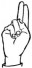 На ћирилици написано БУДИМИР ЂУРЧЕВИЋ састоји се из 15 слова [?]. Исписано ћириличном једноручном азбуком за глувонеме:
